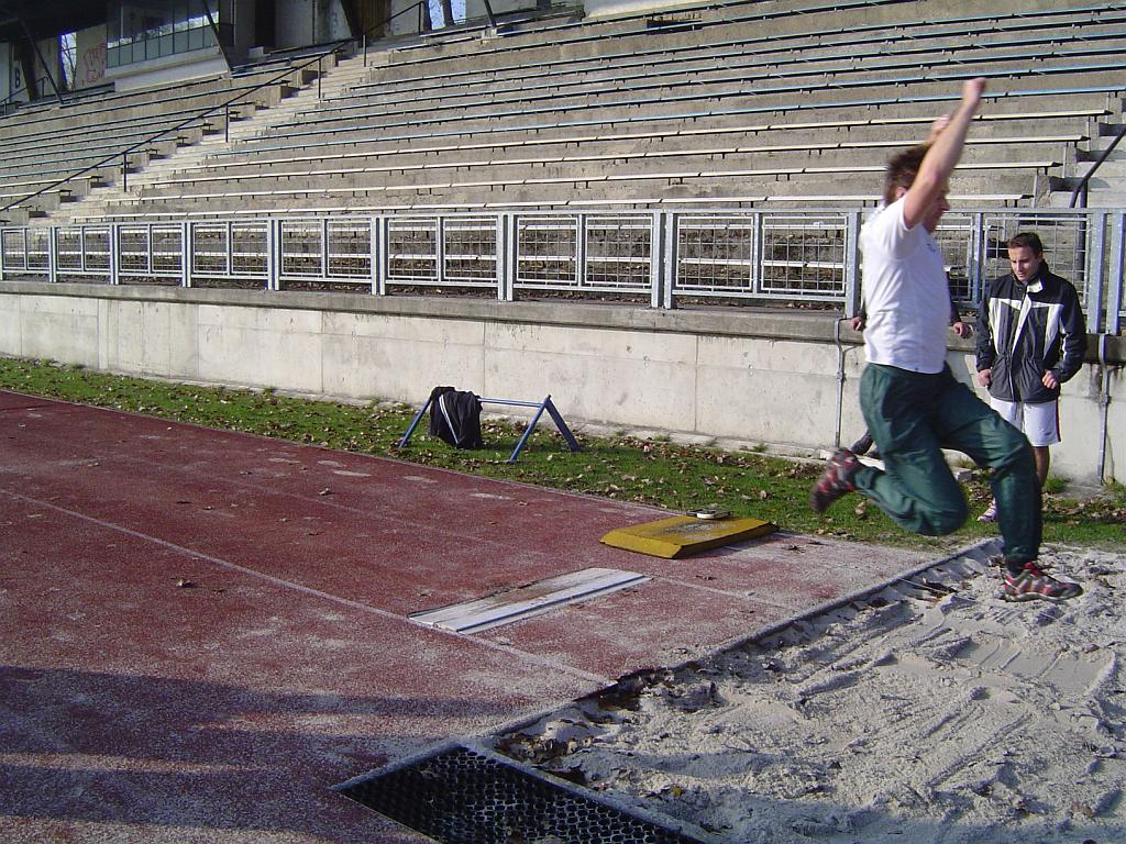 Pavlík se snaží rukama prodloužit skok, co to dá.