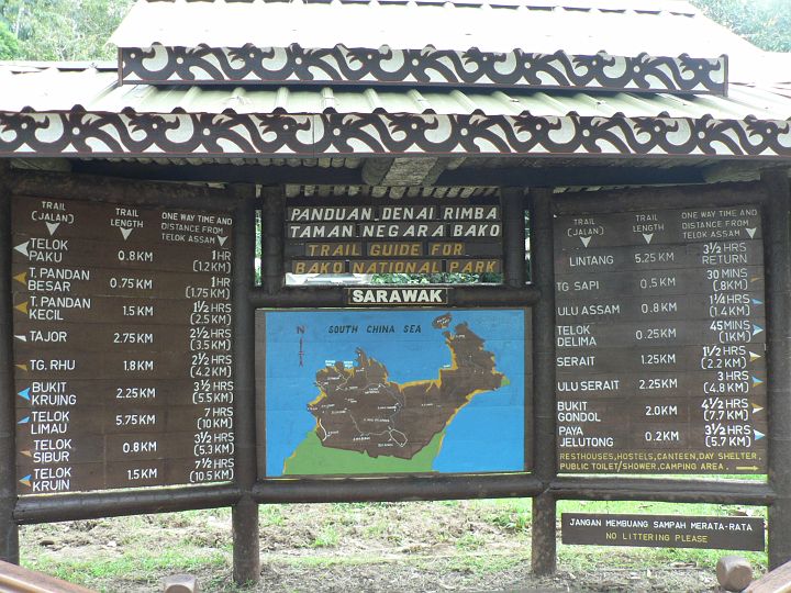 | Národní park Bako obklopuje jihočínské moře. Bylo k dispozici mnoho trail, já s Mildou jsme hlasovali pro nejkratší, Honza s Krocim pro nejdelší, takže z toho vznikl kompromis, dali jsme oba :-). | |