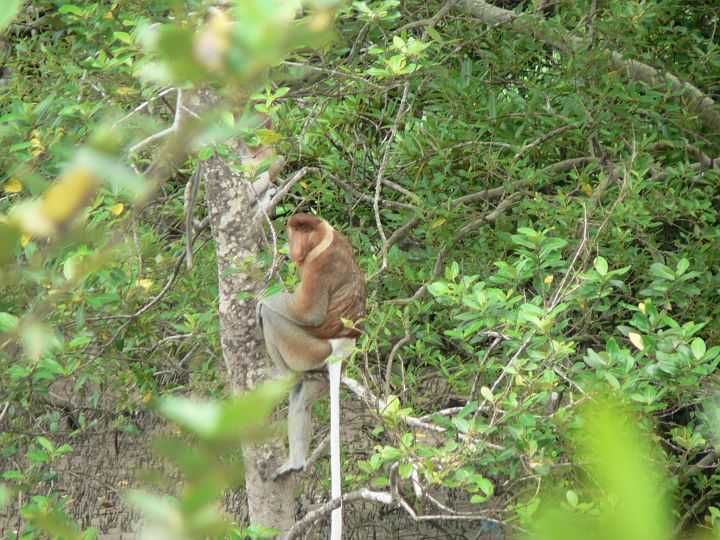 | Kahau je i zdatný plavec, který je schopen plavat z ostrova na ostrova a byl i spatřen z rybářských lodí na otevřeném moři až míli od břehu. Což je neuvěřitelné. Tato opice je na červnené listině ohrožených druhů. | |