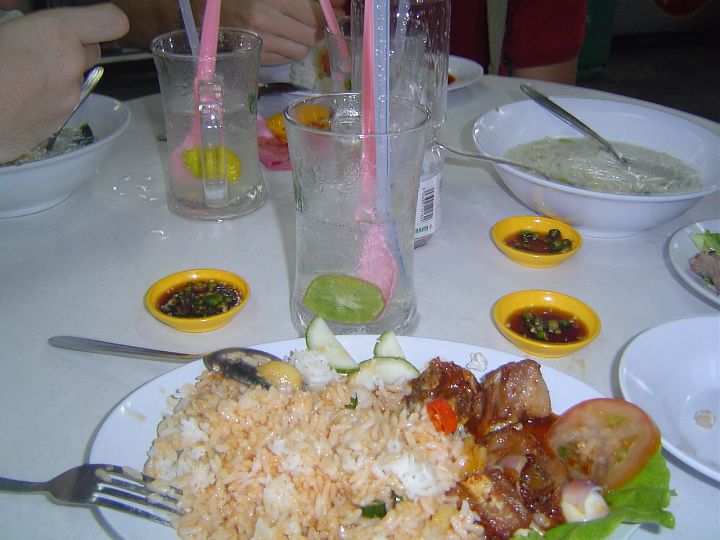 | Jídlo v Indické restauraci. K jídlu byla podávána spousta omáček, sice jsme je nikdo nejedli, ale vždy nám udělali radost. Trochu nás překvapovalo, že nám Indové těch omáček dávají čím dál tím víc. Pochopili jsme to, až když jsme na stole měli 20 omáček na 4 jídla. Za každou omáčku se platilo něco kolem dvanácti korun. Takže jsme nakonec zaplatili za omáčky, kterých jsme se ani nedotkli více než za samotné jídlo. | |