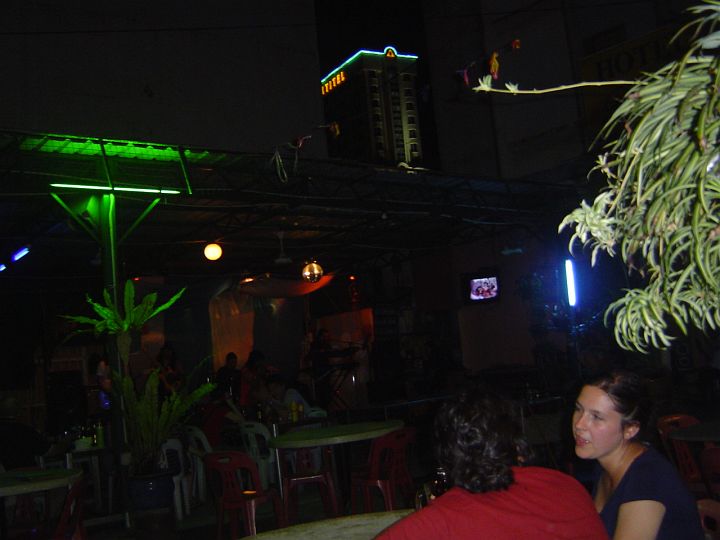 | A raději jsme si šli poslechnout zpěváka, který nám vyhrával na zápraží. Jeho imitace americké angličtiny bylo bezchybná a kdyby hrál u jiného hostelu, byl to příjemný hudebník. Hrál rockové pecky a ani kapela nebyla špatná, ale... | |