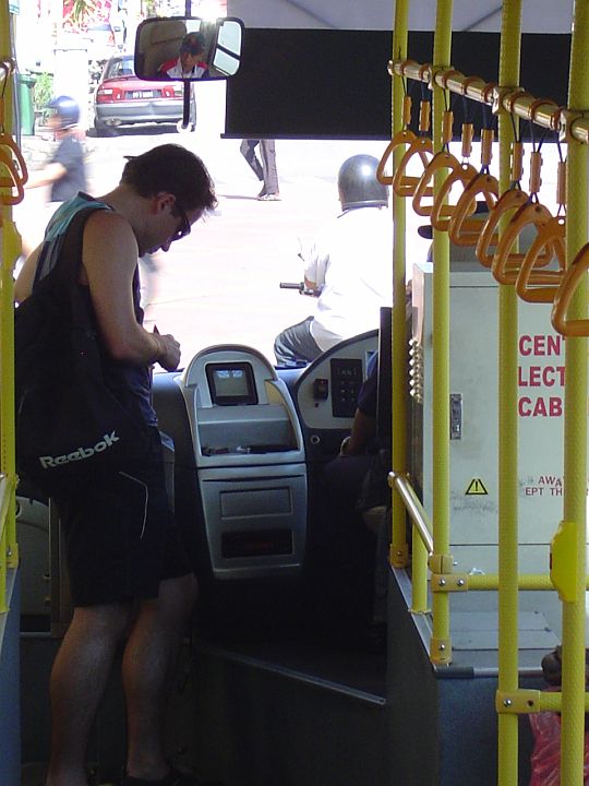 Konečně jedeme na plát. Já jako bankéř opět platím za cestu. Jízdne levné asi 12 korun za cestu přes půl ostrova.
