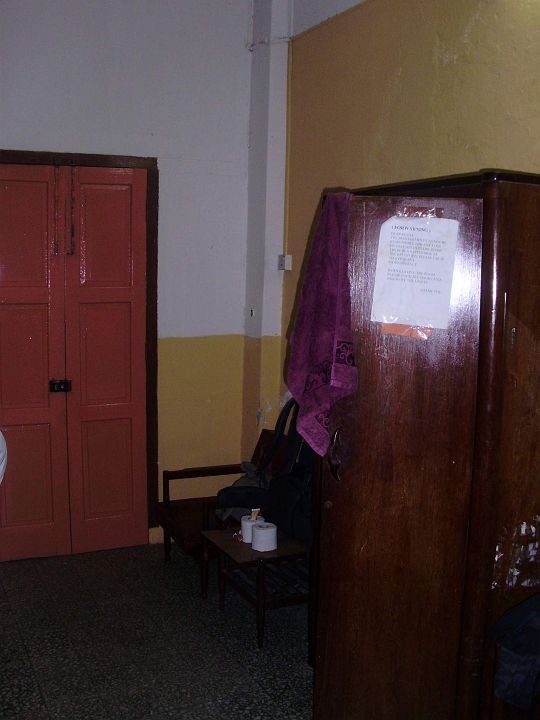 | Na stolku leží dva toaletní papíry, které se mi zhulenec snažil dát, ale povedlo se mu to až na čtvrtý pokus. Pokaždé když jeden vyndal, ho hned dal nějakému kolemjdoucímu. Abych se k nim dostal musel jsem použít trochu mé pověstné asertivity. | |